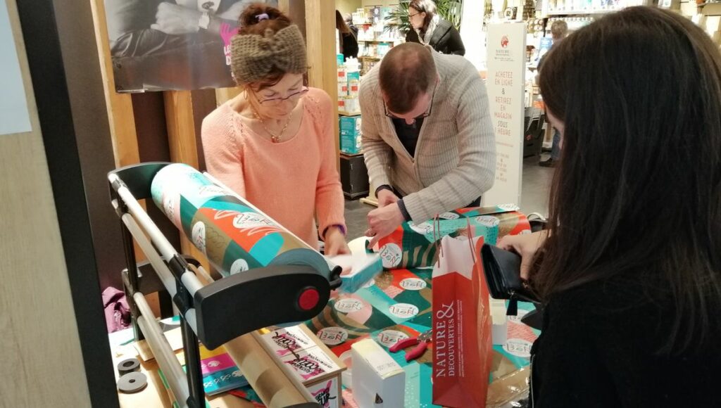 J’ai participé à une mission pliage de cadeaux chez Boulanger durant les périodes de Noël. Ce jour-là, nous avons récolté environ 200 euros de dons, petite somme qui nous permet de grandes actions…